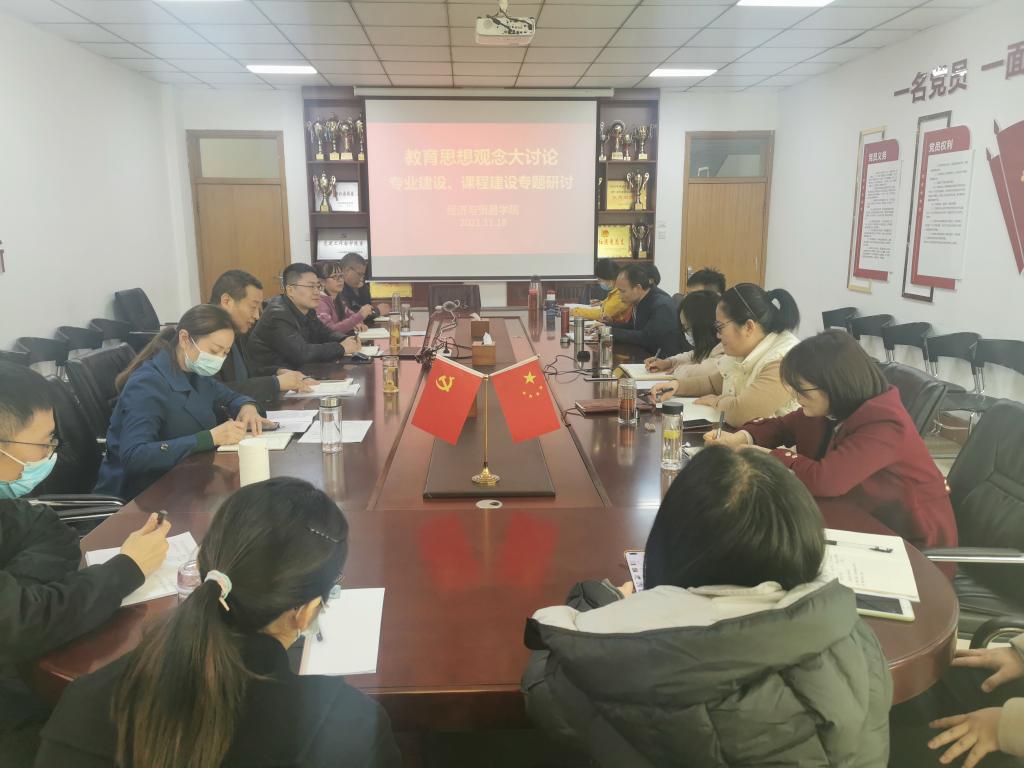 11月18日下午,我院召开第三轮教育思想观念大讨论——专业建设、课程建设专题研讨会,学院领导班子、教研室主任、学院重点建设课程的教学团队部分教师参加了会议。