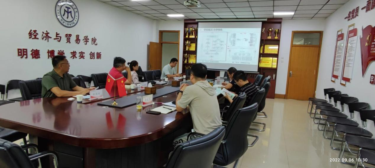 2022年9月6日上午,河南文投乡村发展有限公司总经理林荣斌、项目总监赵美净,北京锦润万泽科技有限公司总经理靳绪双、战略合作总监张延超来我院洽谈校企合作事宜,经济与贸易学院党委书记张松刚、院长李光、副院长梅星星参加了座谈交流,座谈会由张松刚主持。