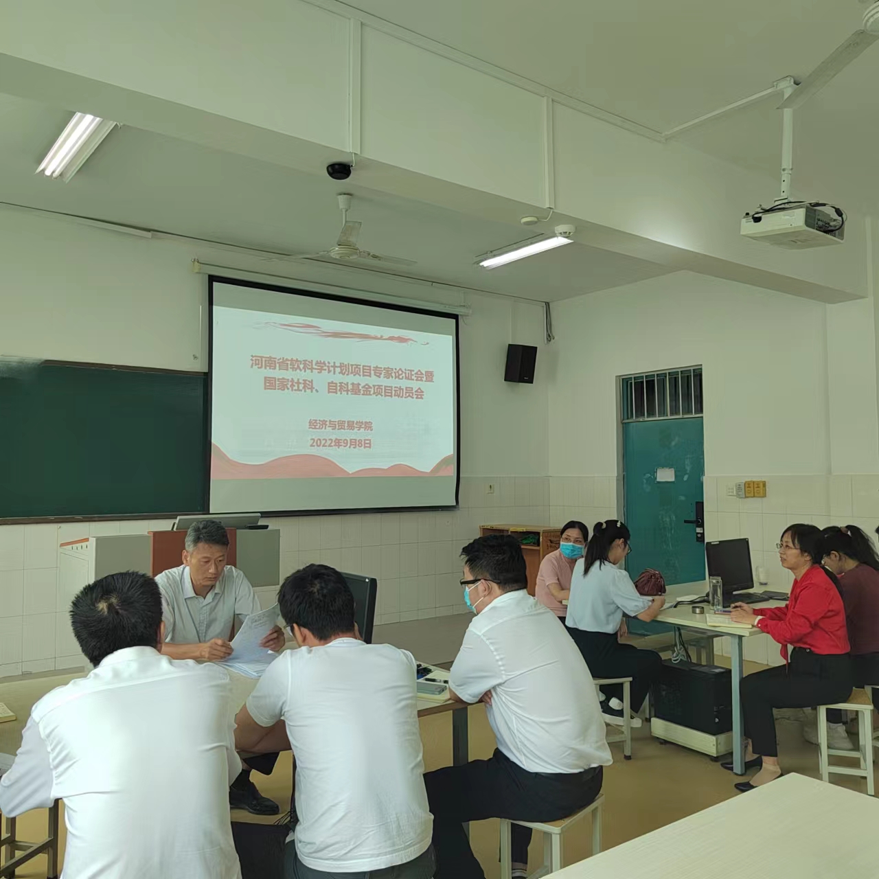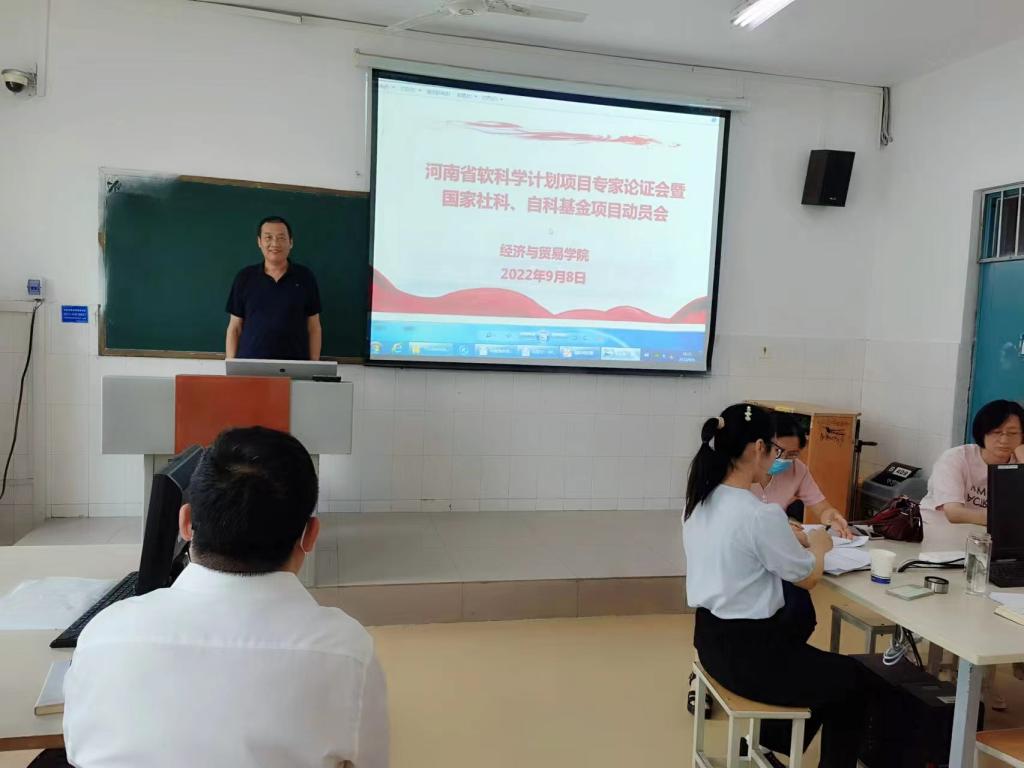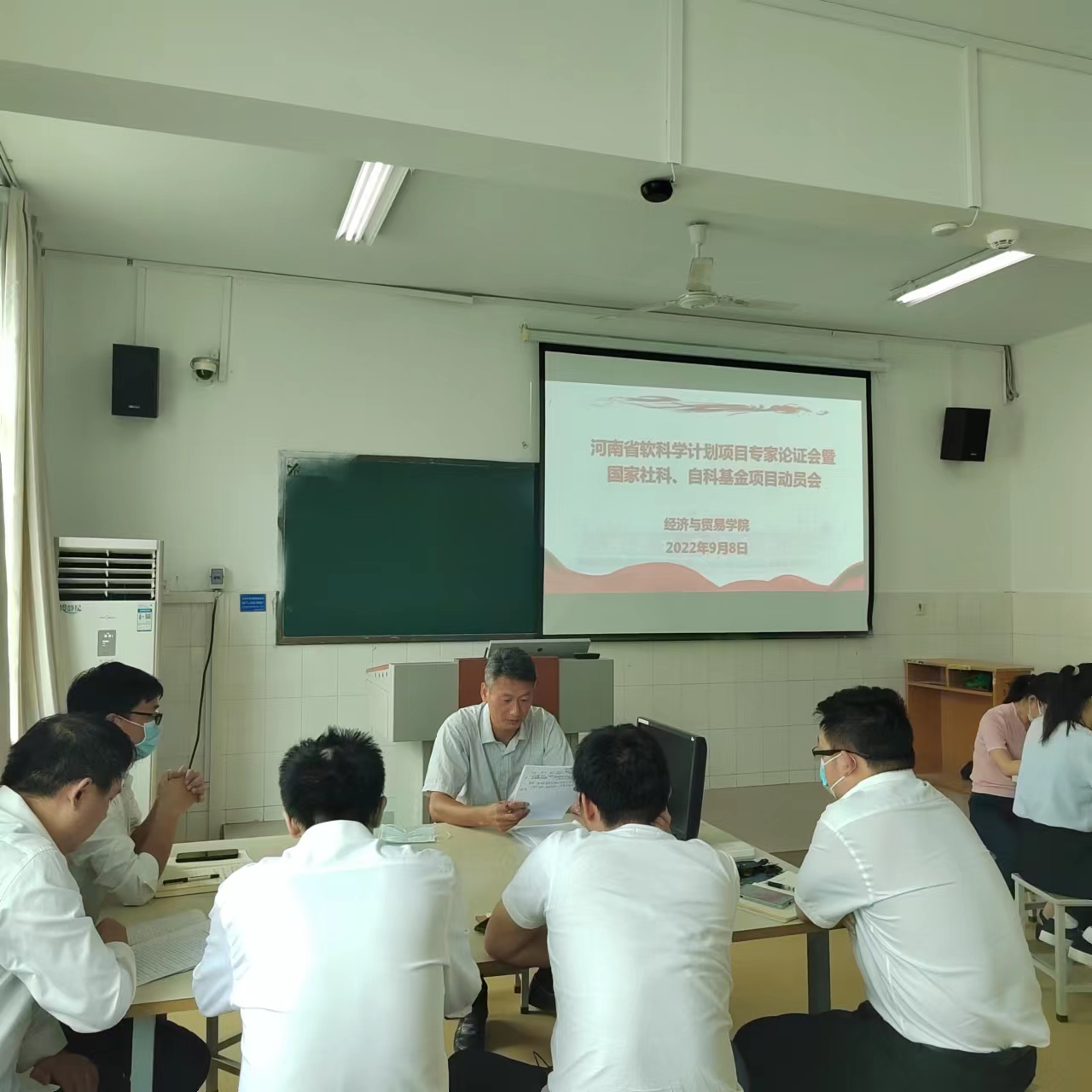 2022年9月8日下午,太阳集团城娱8722在英才校区B409举行2023年度河南省软科学计划项目论证暨国家社科、自科基金项目申报动员会,中共河南省委党校经济学教授、研究生导师张祝平应邀参会,并进行现场论证与指导。太阳集团城娱8722院长李光、副院长杜玲、梅星星、科研办公室主任唐伽、申报河南省软科学项目的老师和全体博士参加了本次会议。会议由李光院长主持。