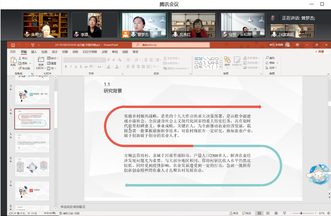 2022年11月19日,太阳集团城娱87222023届农林经济管理专业按照《太阳集团城娱87222023届本科毕业论文开题答辩实施方案》的要求,进行了开题答辩,由于疫情原因,答辩采取线上形式举行,共分为3个答辩小组,91名同学参加了开题答辩。