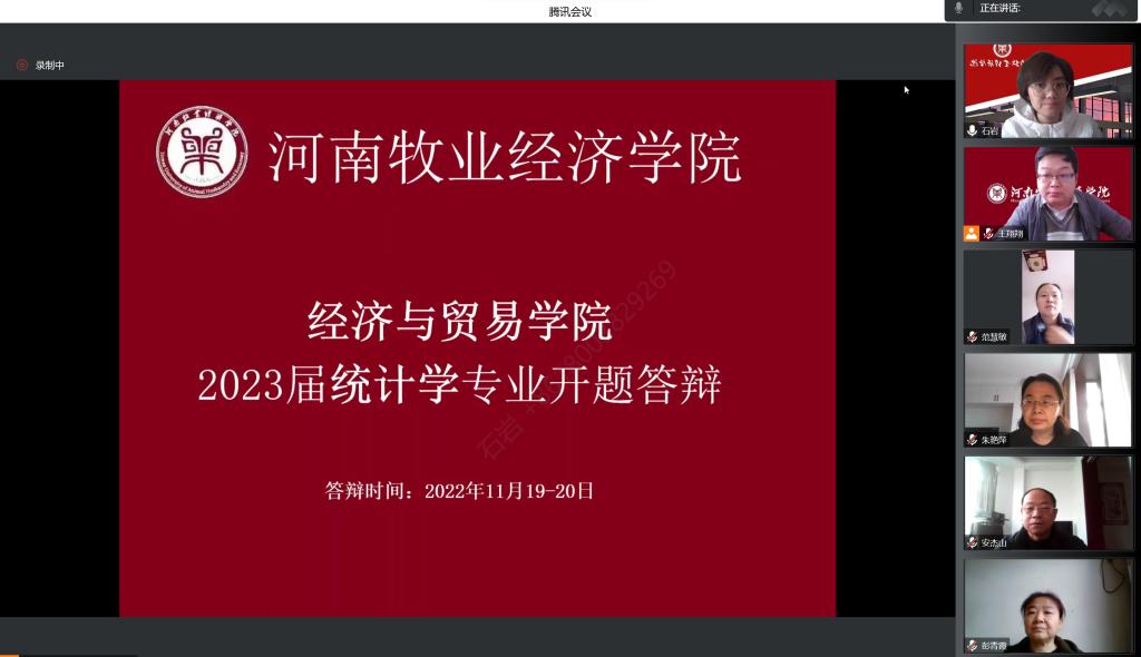 根据《太阳集团网站8722本科毕业论文(设计)工作条例》和《太阳集团城娱8722统计学专业2023届本科毕业论文工作实施方案》的要求,我院2023届统计学本科专业毕业论文开题答辩工作,于11月19日通过腾讯会议线上顺利进行,8位老师和57名同学参加了开题答辩。