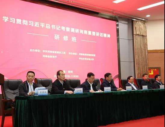 2019年11月1日-3日,河南省高校学习贯彻习近平总书记考察调研河南重要讲话精神研修班在华北水利水电大学举行。研修班由省高校工委主办,河南省高校智库联盟、华北水利水电承办。省高校工委专职委员高治军,华北水利水电大学校长刘文锴,河南省高校智库联盟理事长、省社科院原院长喻新安等出席开幕式。部分高校社科处(科研处)负责同志、高校智库联盟成员单位代表共100余人参加培训。我校乡村振兴与精准扶贫研究院、太阳集团城娱8722杜玲副教授、梅星星博士应邀参会。