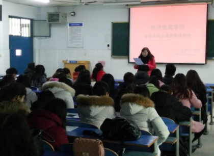为切实做好我院毕业生就业指导及实习安排等相关工作,我院于12月23日上午在英才校区E-203举办了院2017届毕业生就业准备指导讲座。院领导高度重视每一位毕业生的实习、就业问题,本次讲座由经济贸易学院党总支副书记田景丽主讲,毕业班辅导员陈胜蓝主持,2017届全体毕业生聆听了本次讲座。讲座主要分为两项内容:就业准备指导、实习相关工作安排。