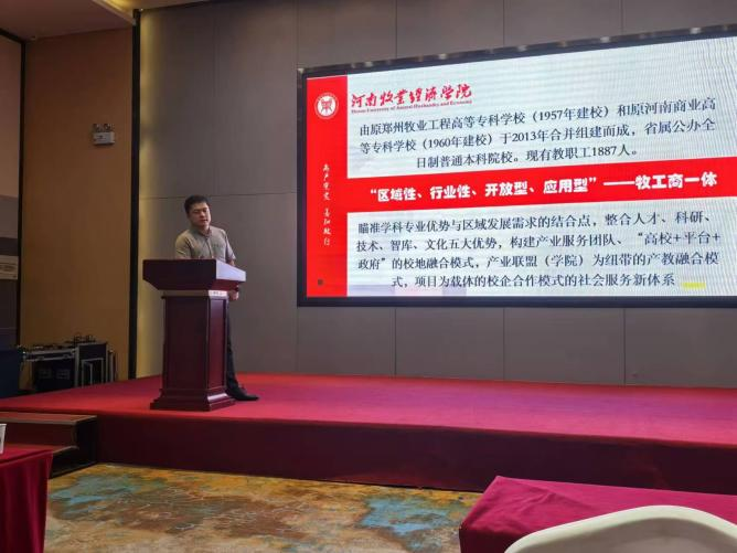 在报告会上,梅博士向各位与会专家介绍我校发展总体情况,社会服务推动产教融合成果及典型经验做法,经贸学院校企合作、校政合作基本思路、成功模式及经验启示;最后,提出关于锚定国家战略:以高校治理体系及能力现代化促进产教融合走深走实的思考建议,得到与会专家的认可与肯定。