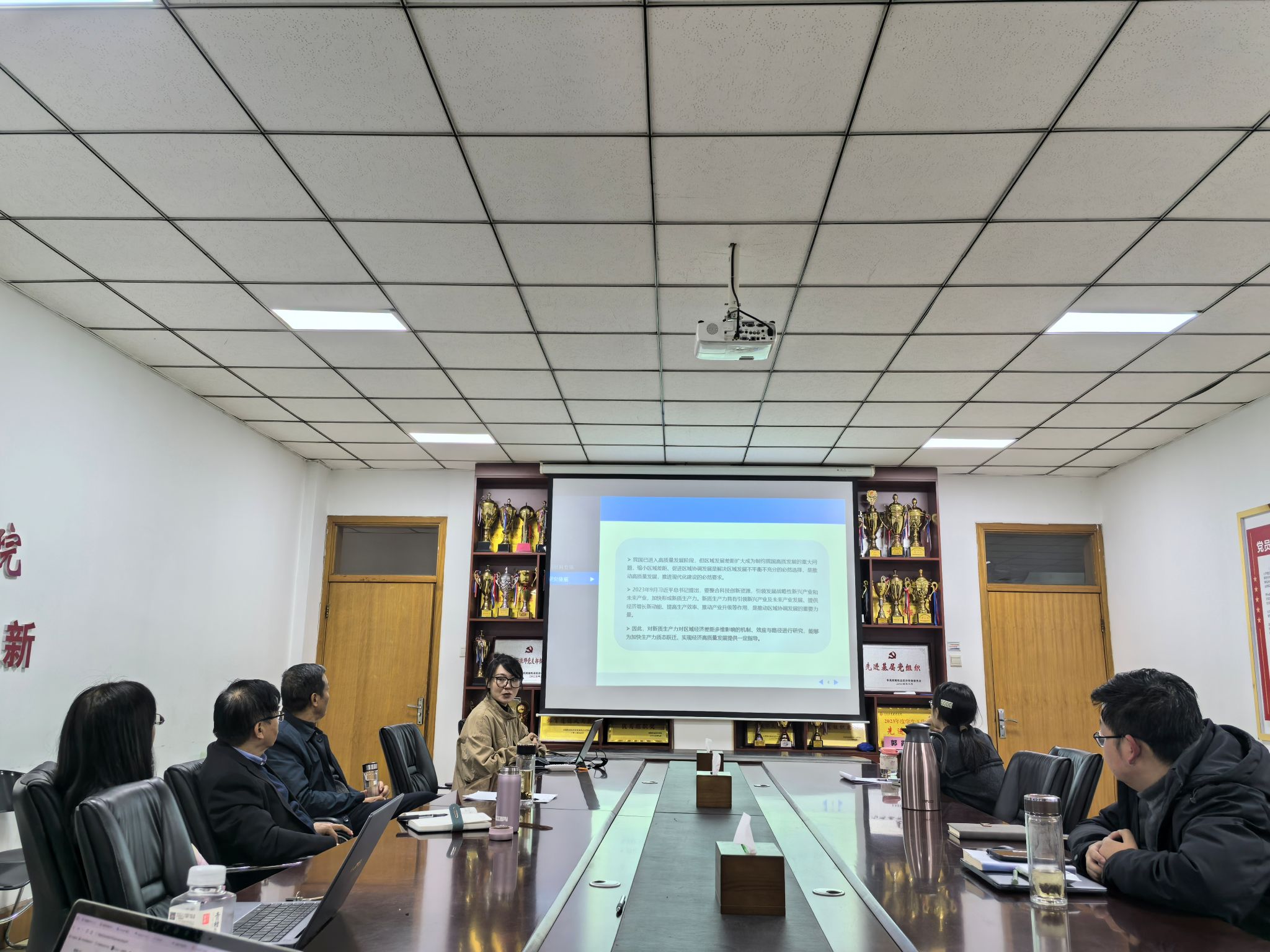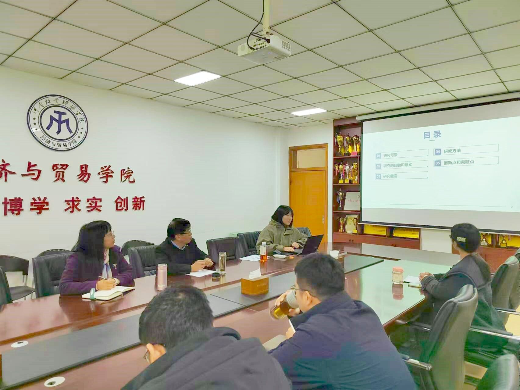 随后我院博士段会霞、曾梦杰、白宇航、王格格和王尹君等博士分别针对学院第一次选题论证时与会老师提出的意见再次从选题背景、主要研究内容、技术路线、创新点等方面进行了汇报。李海舰、李光两位教授及在座博士围绕各项目选题的精准性、论证的科学性、内容的完整性、结构的合理性、观点的创新性、方法的适用性等逐一进行讨论,给出了有针对性的指导意见和建议。