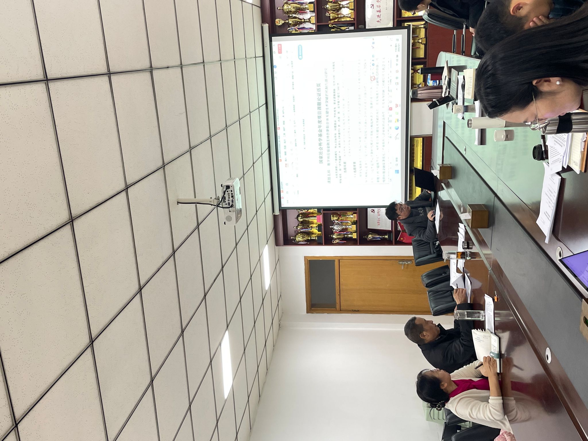 会上,首先由副院长杜玲介绍截止到目前我院2025年国家社科基金、自科基金项目申报进展情况和本次论证会的目的及要求。随后,申报国家基金项目的博士们分别用PPT汇报了项目的选题依据、研究内容、研究框架、技术路线图和创新点等。与会教师结合各位申报人员的申报书和PPT汇报情况,从题目、研究现状及进展、研究内容、技术路线图、研究方法、创新点以及申请书各部分的撰写等方面进行了深入讨论,并对每个申报项目提出了有针对性的修改意见和建议。各申报项目的博士们认真听取与会教师的意见,并表示会议结束后对申报书认真修改完善。