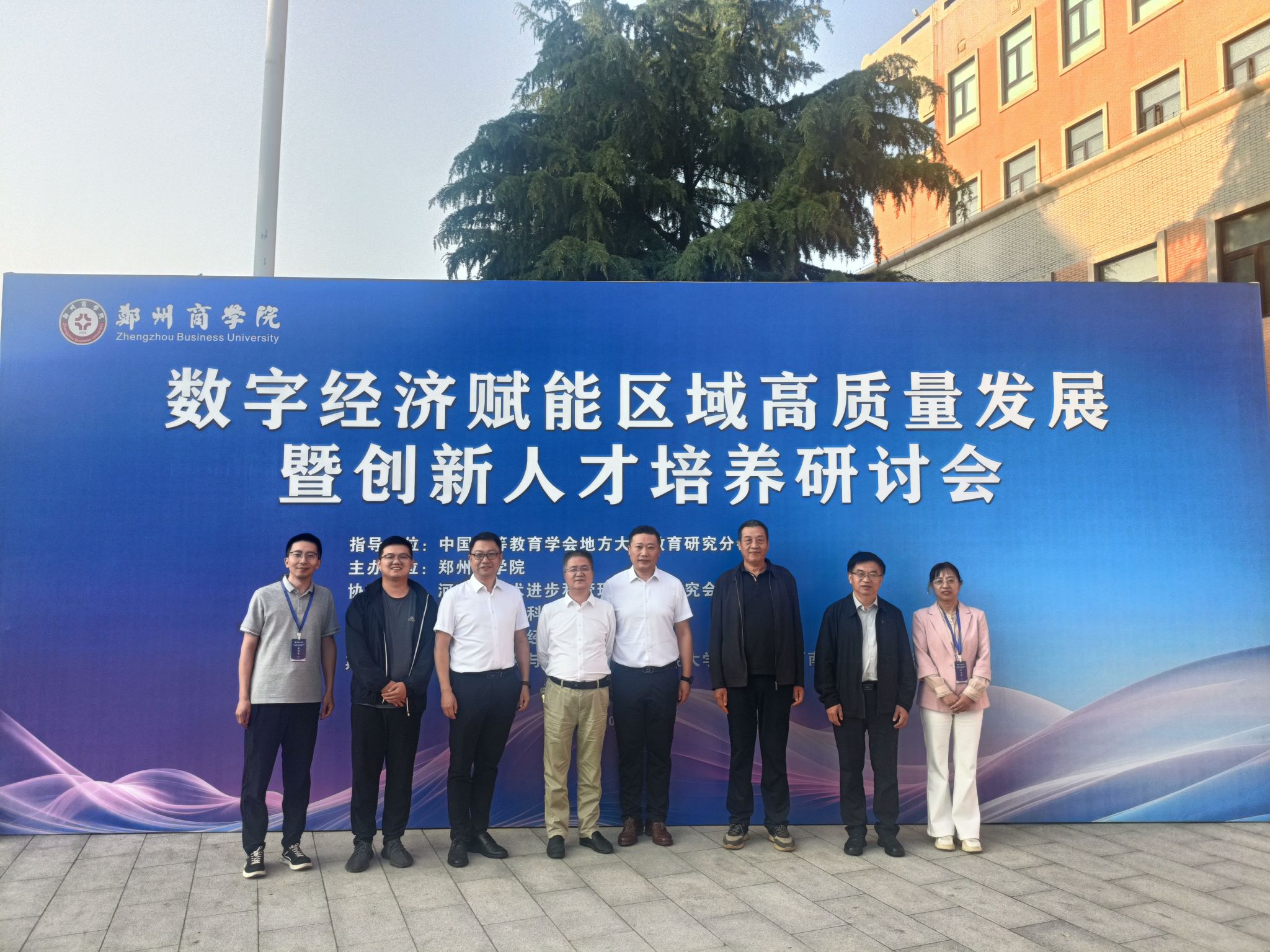 5月24日,由郑州商学院主办的“数字经济赋能区域高质量发展暨创新人才培养研讨会”在巩义市成功举办。太阳集团城娱8722院长李光教授率团参会,团队成员包括副院长杜玲副教授、数字经济教研室主任胡海洋博士和跨境电商教研室主任王建植老师。本次研讨会汇聚了来自全省高校、科研院所及企业的百余名专家学者,共同探讨数字经济时代的发展机遇与人才培养创新路径。
