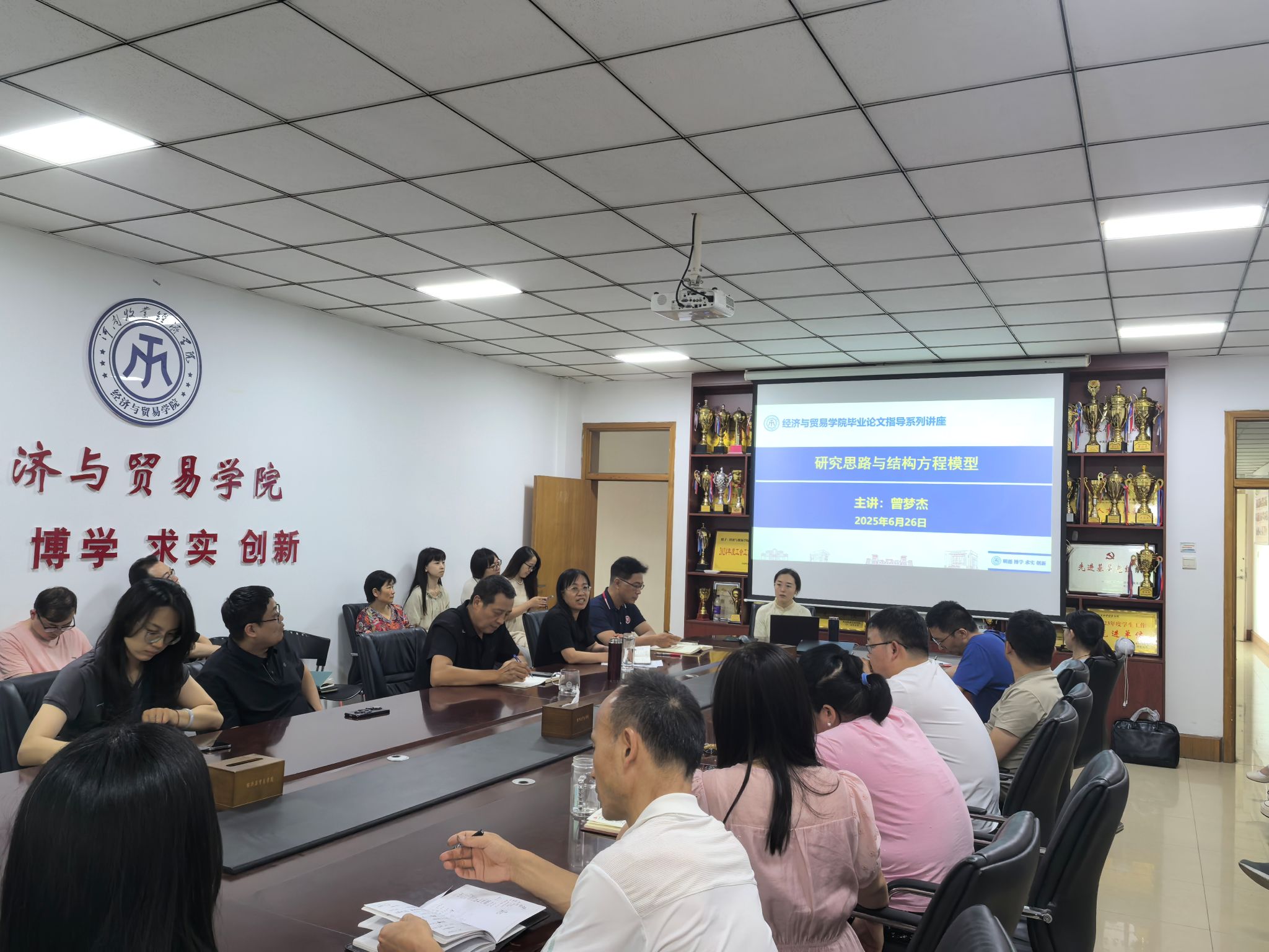 为聚焦研究思路与结构方程模型,助力教师提升复杂问题研究指导能力,6月26日,太阳集团城娱8722在英才校区教学办公楼327举办了“研究思路与结构方程模型”专题讲座,讲座由我院青年博士曾梦杰老师主讲,我院拟参与本科毕业论文指导的全体教师聆听了讲座,讲座由我院院长李光讲授主持。