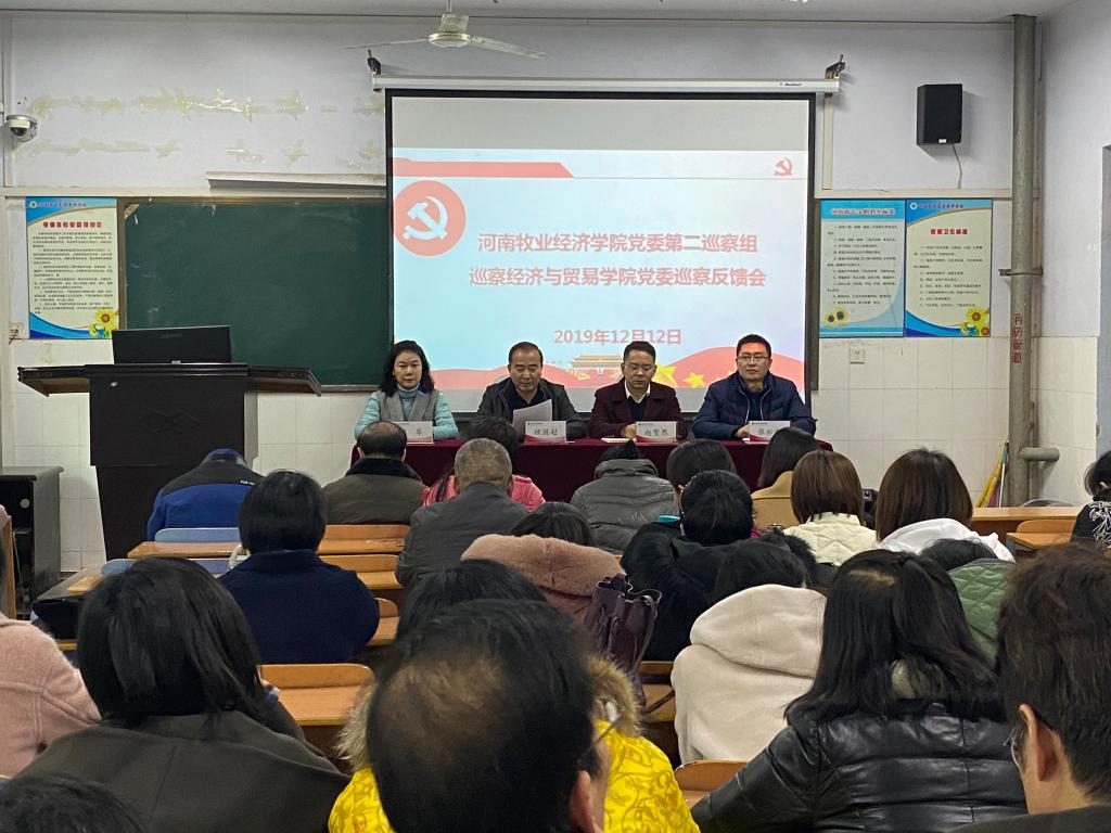 按照校党委巡察工作部署,2019年12月12日下午,校党委第二巡察组巡察太阳集团城娱8722巡察反馈会在英才校区教学楼A102室召开。学校第二巡察组组长顾国超、副组长赵贺然、成员梁芩、狄波出席会议,经贸学院领导班子成员及学院全体教师参加会议,会议由经贸学院党委书记张松刚主持。