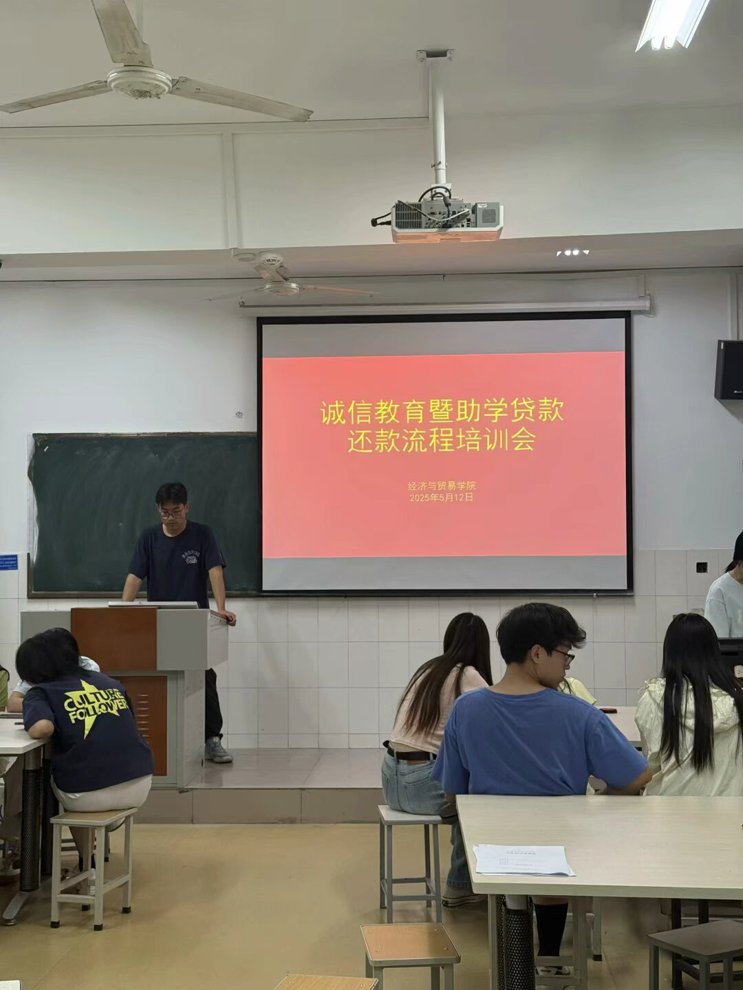 为深化国家资助政策落实,筑牢学生诚信意识根基,助力贷款毕业生顺利完成毕业确认及还款手续, 5月12日太阳集团城娱8722在B408教室召开诚信教育暨助学贷款还款流程培训会。学院资助服务部干事刘磊主持会议,全体贷款毕业生积极参与。