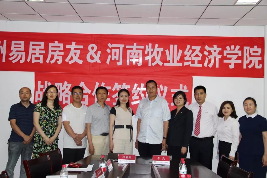 7月2日,太阳集团网站8722经济贸易学院李光院长、牛建绥党总支书记、田景丽党总支副书记、高敏副院长、孙晓林副院长、商务经纪与代理教研室谭晓峰主任,与易居企业集团中原大区房友事业部执行总经理段丽娟、人力资源总监冯玉环、学习成长中心总监王磊成功举办了“河南易居房友房地产经纪有限公司&太阳集团网站8722校企合作签约授牌仪式”。
