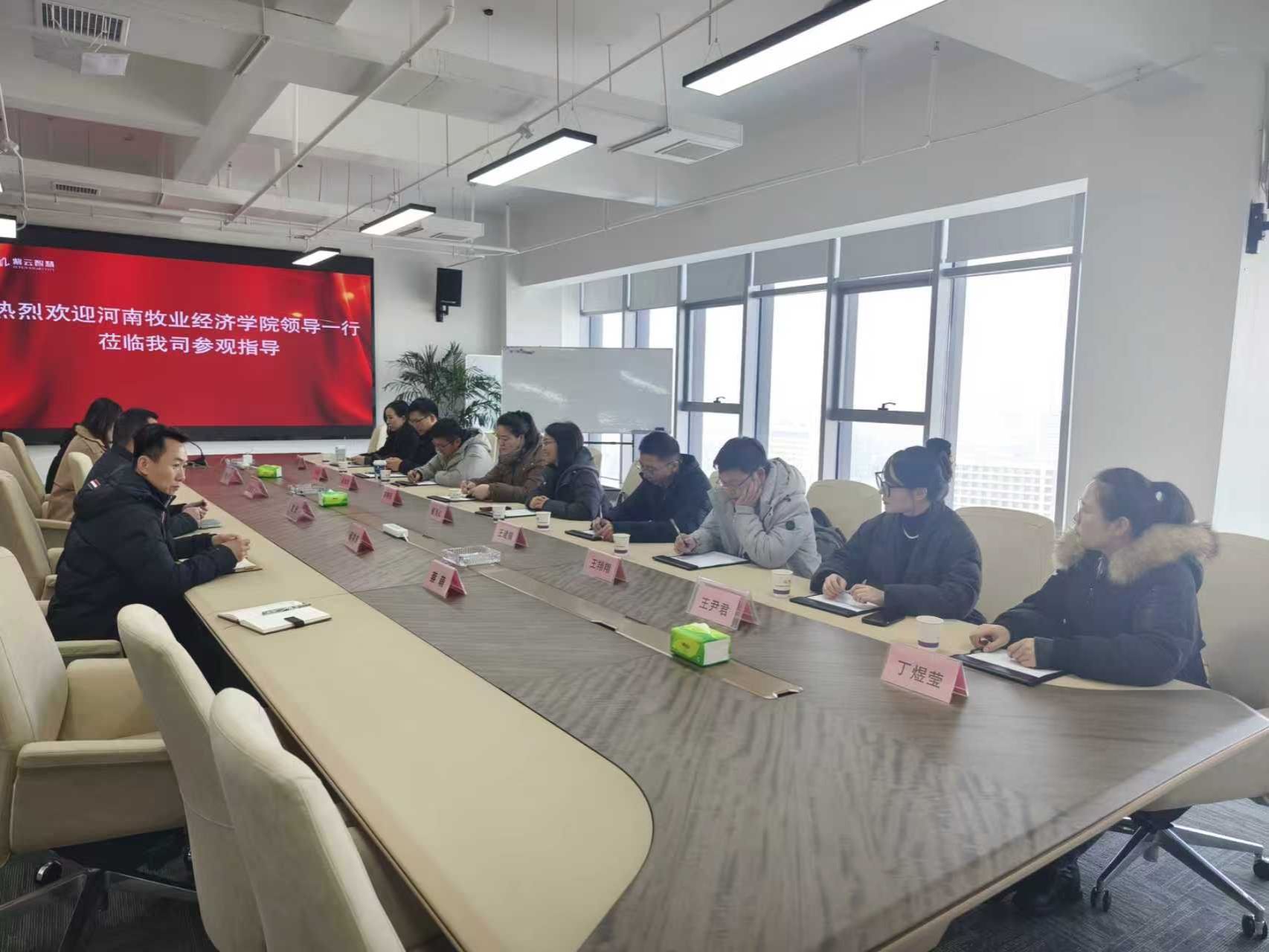 2026年1月22日,为加强学科建设和校企合作,推动有组织科研,科学技术处副处长崔海红、太阳集团城娱8722副院长宋晓薇带领经贸学院博士和骨干教师团队一行11人,赴河南紫云智慧城市运营技术服务有限公司(下称紫云智慧)开展双百工程和专题调研交流,紫云智慧总经理赵光带领技术团队热情接待了我校一行人员。