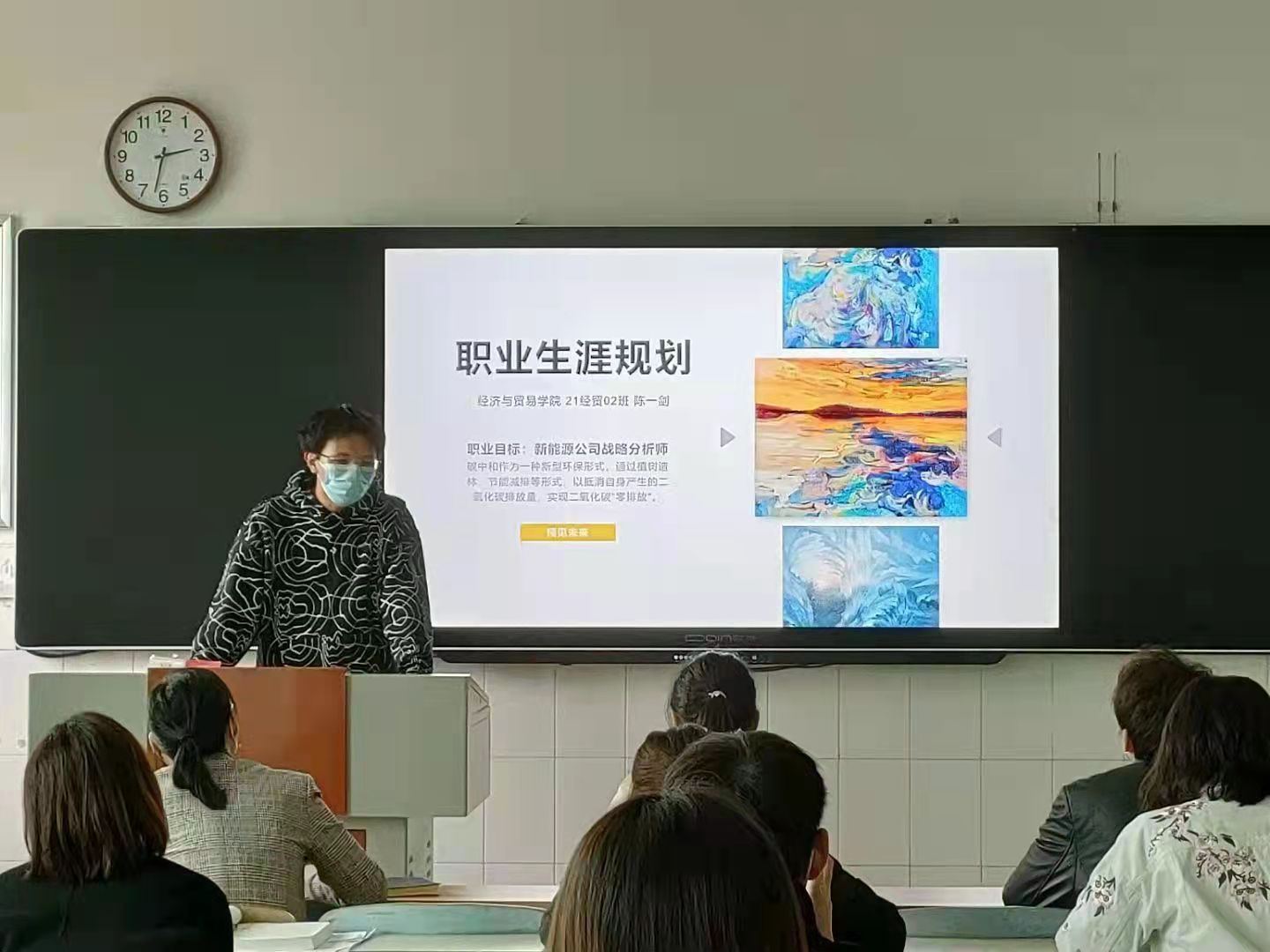 为传播和普及职业规划理念,引导、鼓励大学生树立正确的人生观、价值观、就业观,我院于2021年11月5日下午在B202教室举办职业生涯规划大赛初赛。本次大赛以“逐梦青春·职击未来”为主题,由我院创新创业部承办,张晓嵩老师、苗艳芳老师、张雅琪老师、李福华老师、张欣老师、贾丹丹老师、杨梅老师等出席评委。