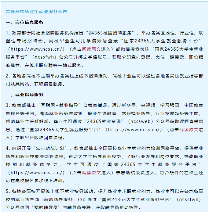 普通高校毕业生就业服务公告